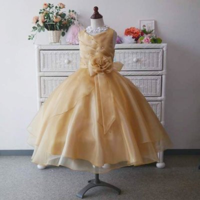 | フレアスカートのラインが美しいドレスです。 画像の商品はプリンセスパニエを着用し、よりボリュームのあるスカートにしています。 結婚式や発表会にどうぞ♪ |